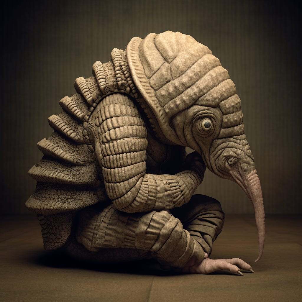 And what if yer leave this fuckin body n end up with the same mind but in a different body like a fuckin armadillo with tiny arms n legs n a heavy shell, or a snake with no fuckin arms at all, or worse, a fuckin politician?