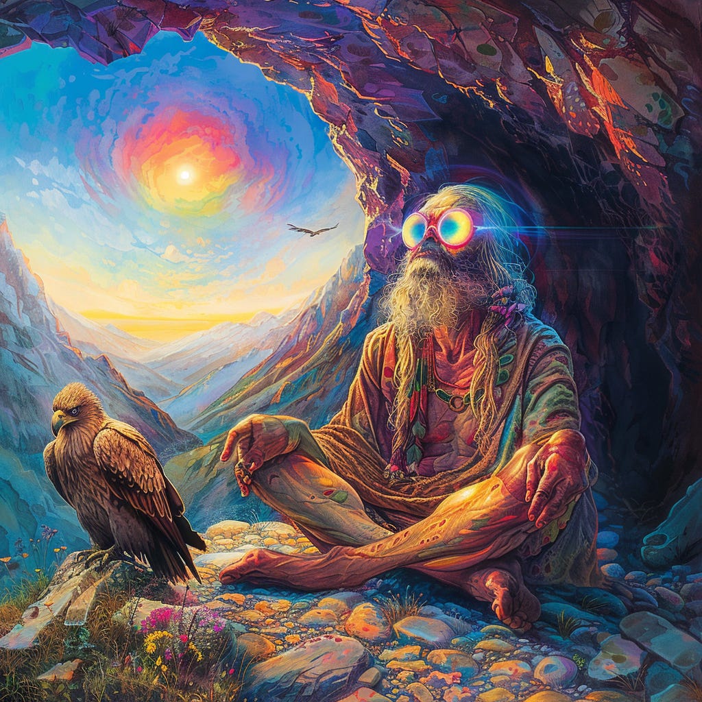 I look down at my pecha and the writin’s goin’ all weird with rainbow light round the edges. And I’m thinkin’ not fuckin this again, it must be the Guru Shanshek manifestin’ as a beaver-like dirty cunt.