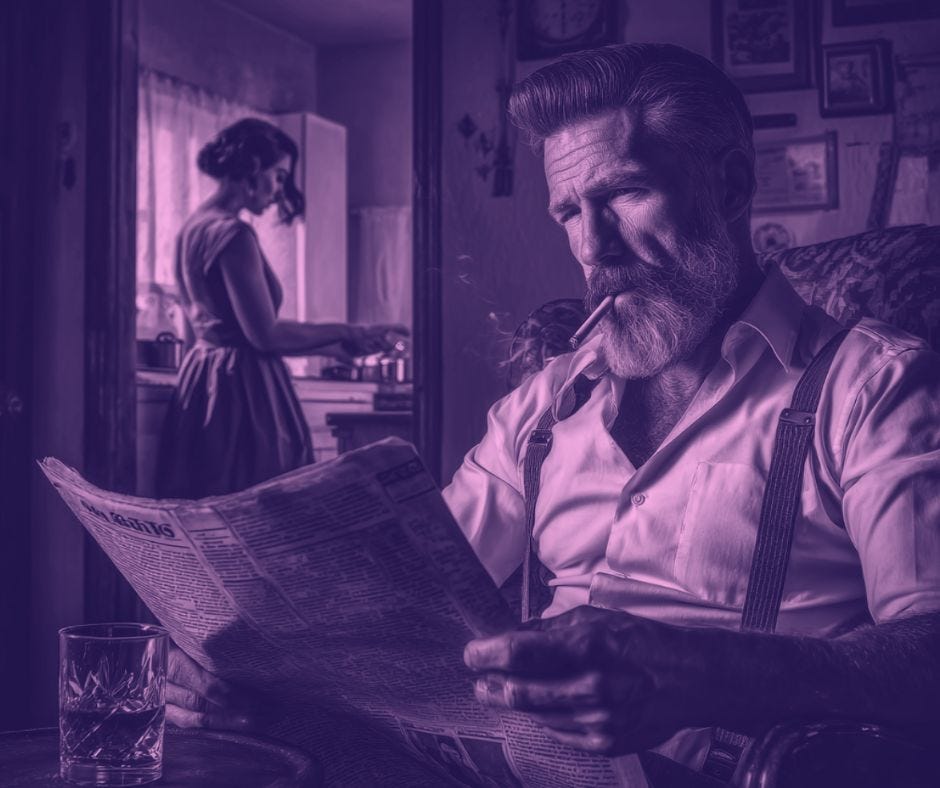 There is also some idea that men went to work, then came home, smoked Camel shite cigarettes and drank whisky in an armchair, reading the Beano while their wives cooked them beef and mashed potatoes, and home-schooled the kids.