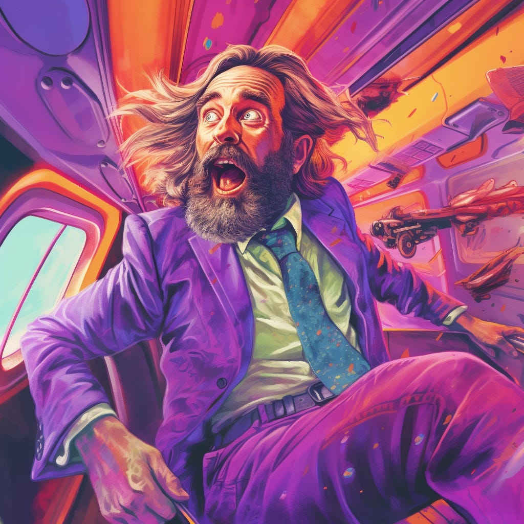 I wonder if any of the other toilets are bigger. But I’d have to wait some time to avoid suspicion. I wonder if I can just wank under this blanket in the plastic wrapping. There’s a bald guy in a golf shirt next to me, and he keeps nodding off. If I wait five minutes, he might be fully asleep, and I can just jack off in peace right here in my seat. Sure it’s edgy, but those porno influencers do this kind of shit, don’t they? Maybe I should become one of them. I could call it The High Flying Wanker or something.
