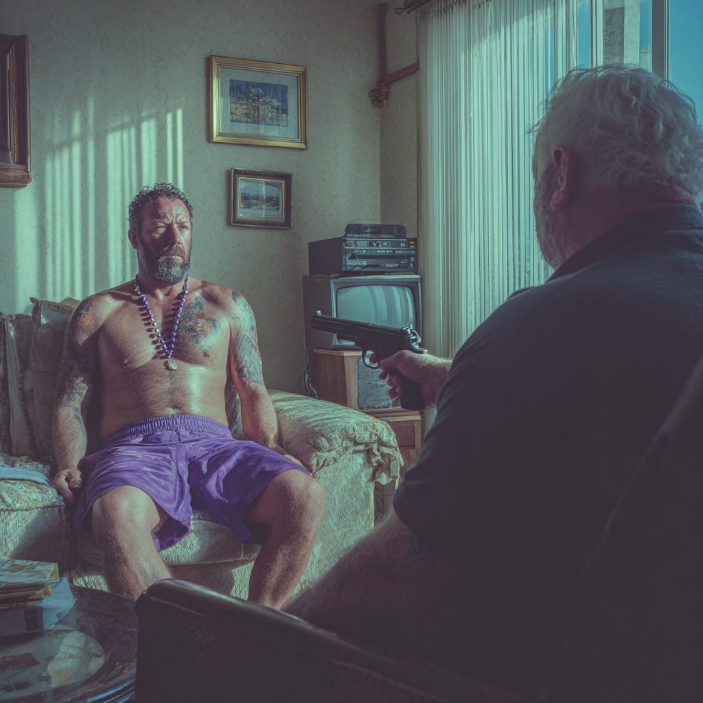 That’s when I noticed the man sitting opposite in the chair— and the pistol resting in his hand.