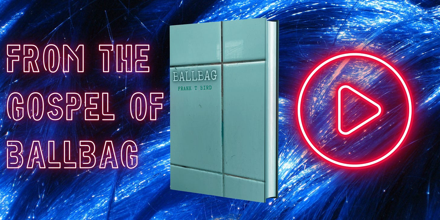 If you liked this story, and you need a laugh in your life because you are depressed and possibly suicidal, consider buying the book called ‘Ballbag’, in which this story appears along with a whole bunch of other life-changing horseshit that will probably worsen your condition.