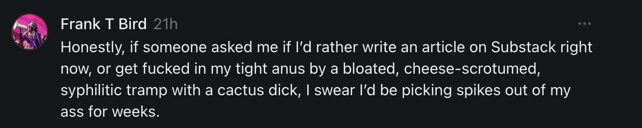 Discovered that writing articles on Substack gives me itchy nads. so I took to posting memes and witty life observations instead: